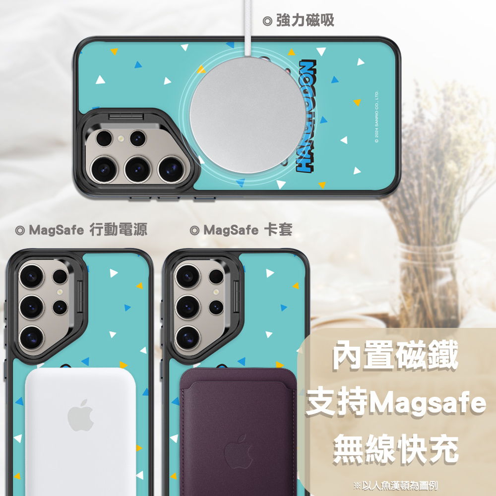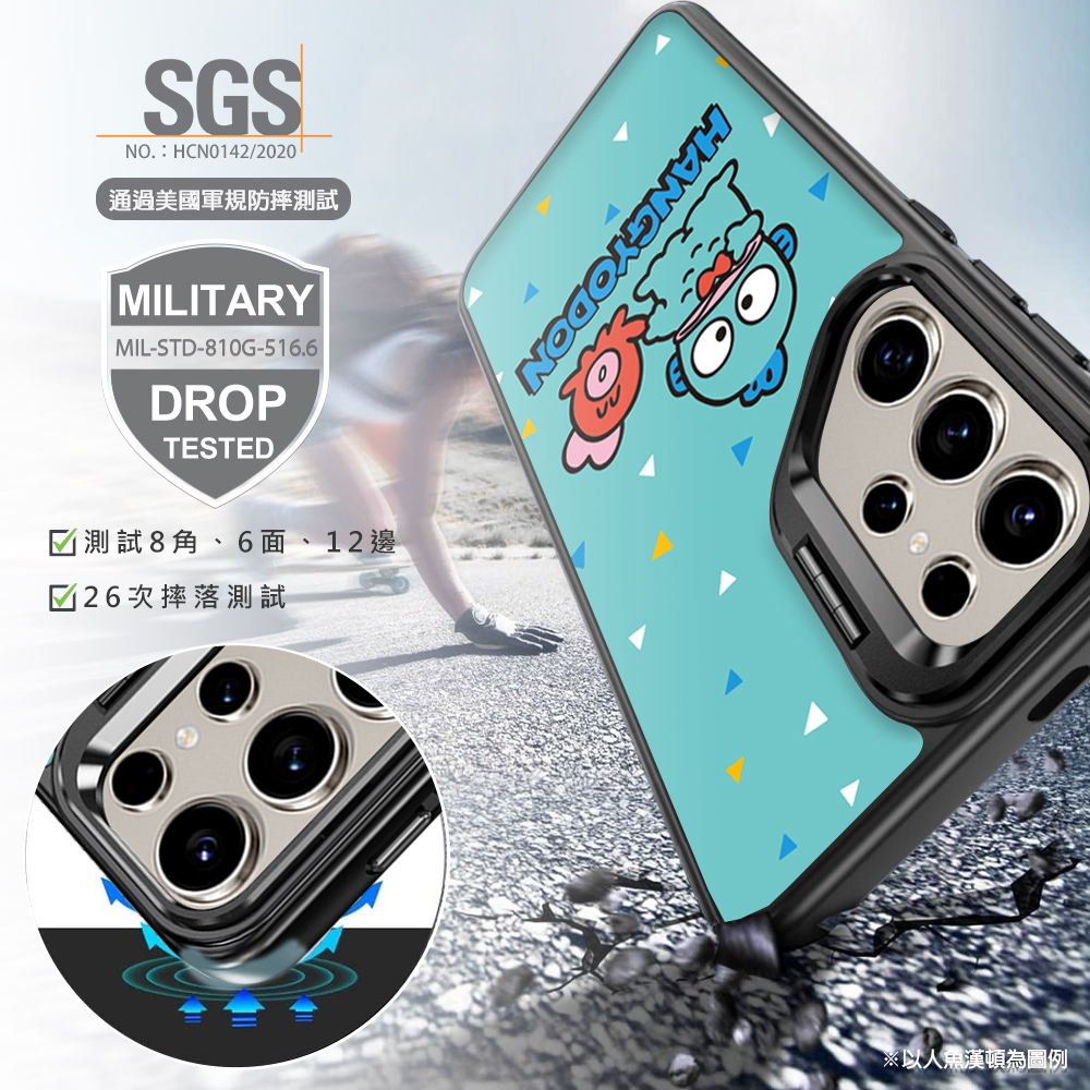 三麗鷗 軍規防摔合金框隱形立架手機殼-水果漢頓(S26/S25/S24/S23系列)