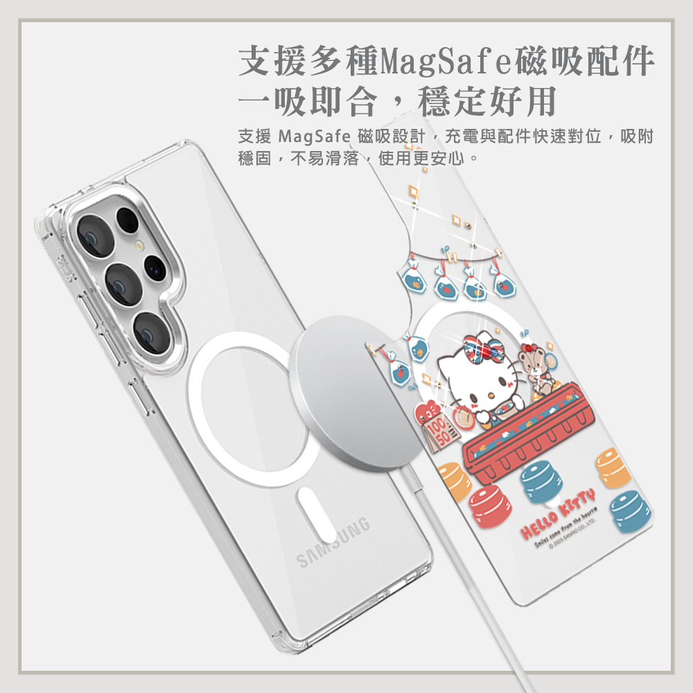 三麗鷗 可拆式磁吸片材彩鑽手機殼-撈金魚凱蒂(S26/S25/S24系列)