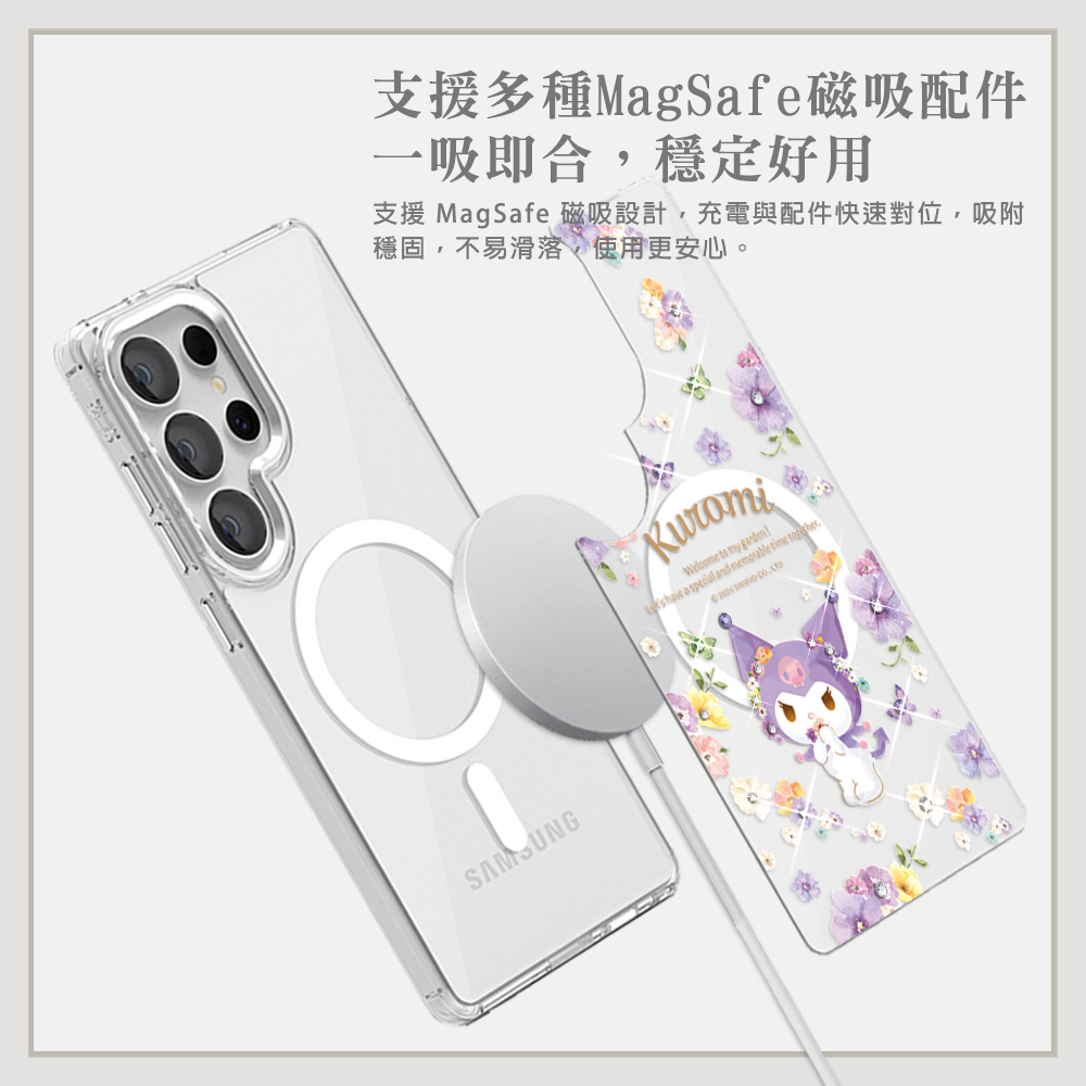 三麗鷗 可拆式磁吸片材彩鑽手機殼-芬芳酷洛米(S26/S25/S24系列)
