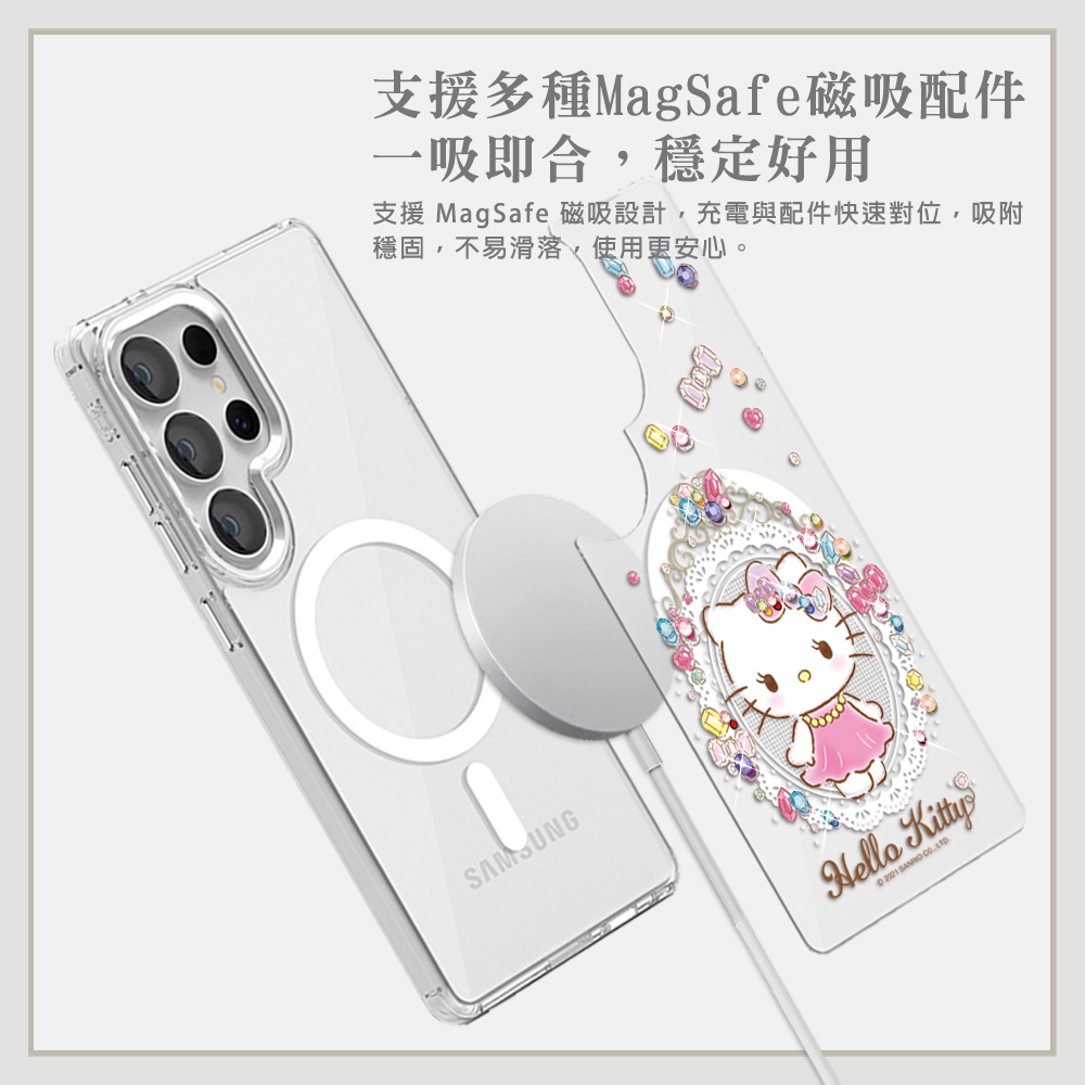 > 商品專區 > Samsung > ★三麗鷗-可拆式磁吸片材彩鑽 > 三麗鷗 可拆式磁吸片材彩鑽手機殼-凱蒂奢華風(S26/S25/S24系列)
