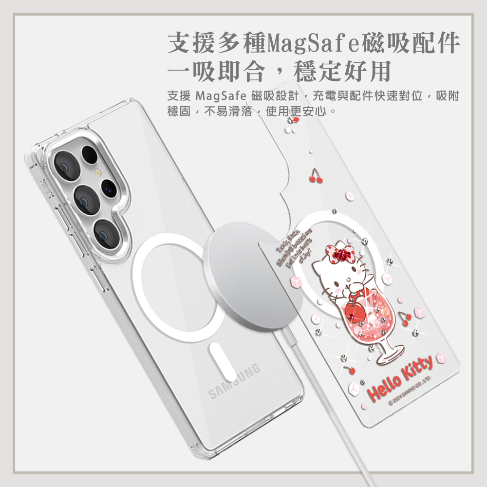 三麗鷗 可拆式磁吸片材彩鑽手機殼-汽水凱蒂(S26/S25/S24系列)