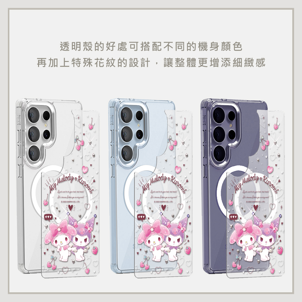 三麗鷗 可拆式磁吸片材彩鑽手機殼-芬芳美樂蒂(S26/S25/S24系列)
